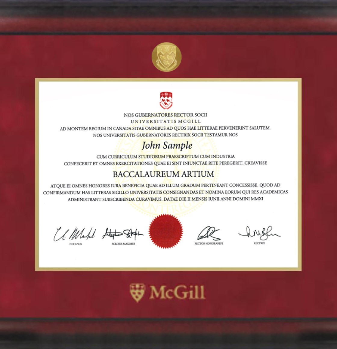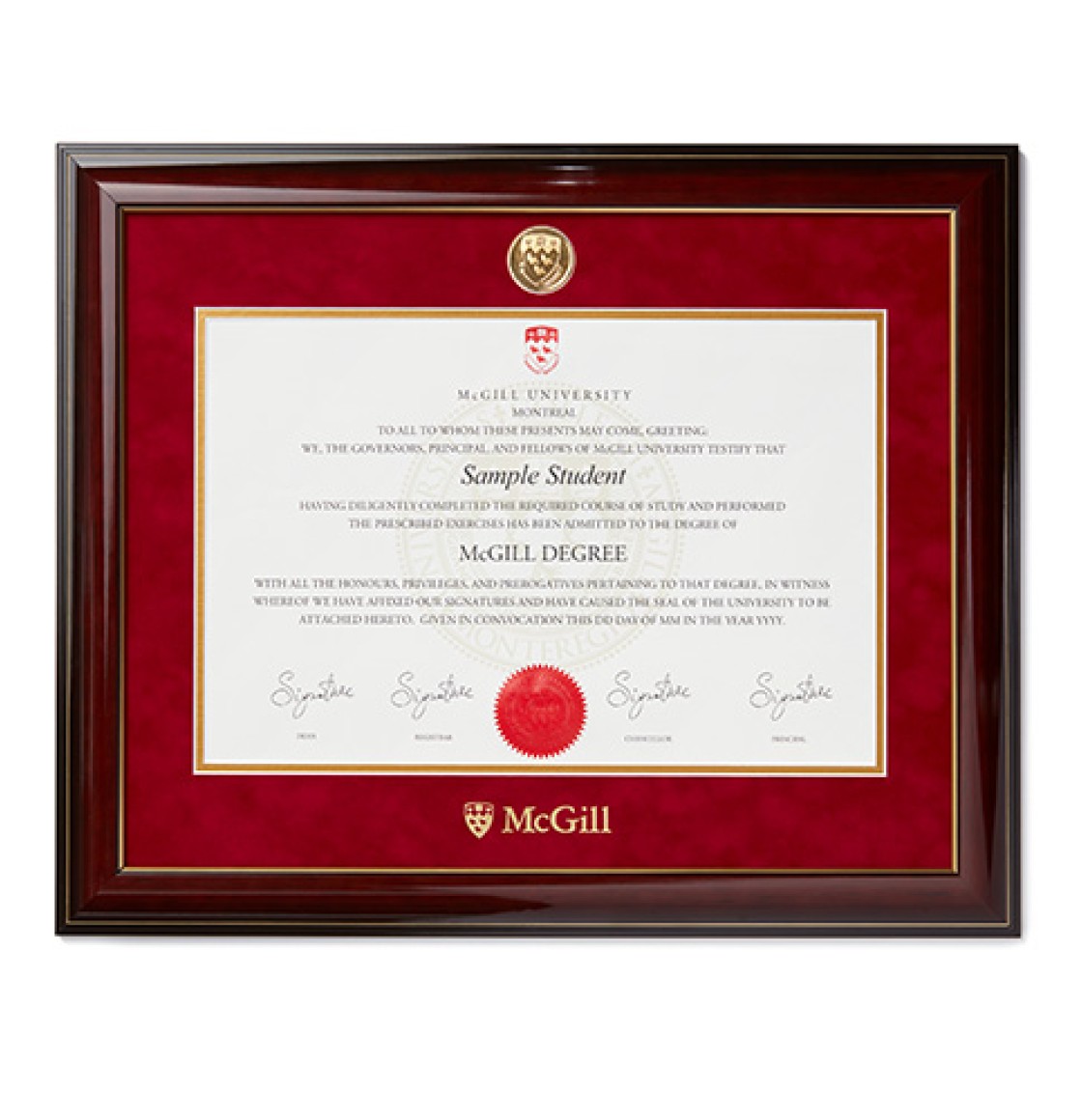 McGill Mahogany Frame with Gold Edge and Medallion